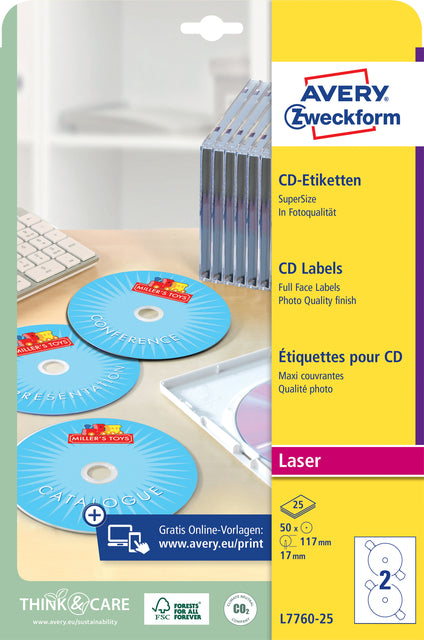 Das Erstellen eines CD- oder DVD-Etiketts ist ein wichtiger Teil der Verpackung Ihres Produkts. Mit einem professionellen Design können Sie Ihre Produkte hervorheben und Ihrem Unternehmen ein professionelles Aussehen verleihen. Bei Kleinkantoor.nl verfügen wir über eine große Auswahl an CD-/DVD-Etiketten, mit denen Sie Ihre Produkte verpacken können.