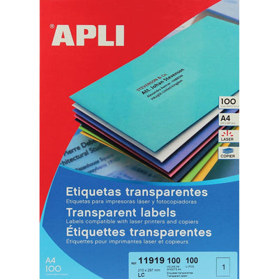 Apli – Transparente Etiketten ft 210 x 297 mm (B x H), 100 Stück, 1 pro Blatt, Karton mit 100 Blatt