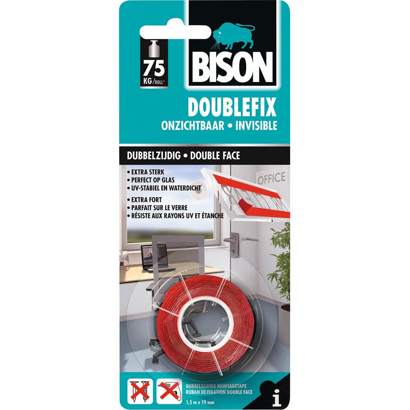 Bison – doppelseitiges Klebeband, ft 19 mm x 1,5 m, transparent