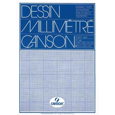 Canson - Millimeterpapier hellblau bedruckt 50 Blatt 72gr A3 weiß | 10 Stück