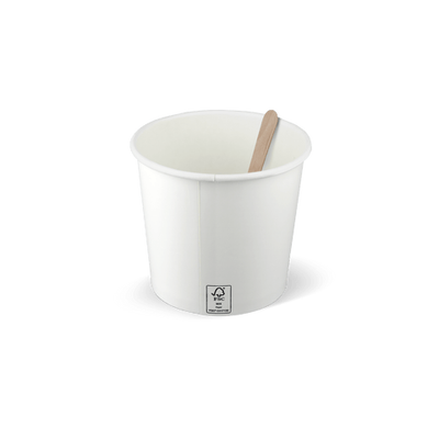 Suchen Sie nach umweltfreundlichen Bechern zum Servieren von Eis? Diese großen weißen Eisbecher aus Pappe bieten eine langlebige und praktische Lösung. Mit einem Fassungsvermögen von 360 ml sind sie ideal für den professionellen und privaten Gebrauch. Sie werden aus FSC®-zertifiziertem Papier hergestellt, tragen zu einer verantwortungsvollen Waldbewirtschaftung bei und helfen, die Abholzung der Wälder zu verhindern.