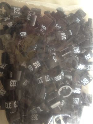 Serie, nummeriert von 301 bis 400. Diese praktischen Nummerierungswerkzeuge eignen sich ideal zum Ordnen von Kleiderbügeln und ermöglichen Ihnen eine schnelle und effiziente Verwaltung Ihrer Garderobe oder Ihres Inventars.