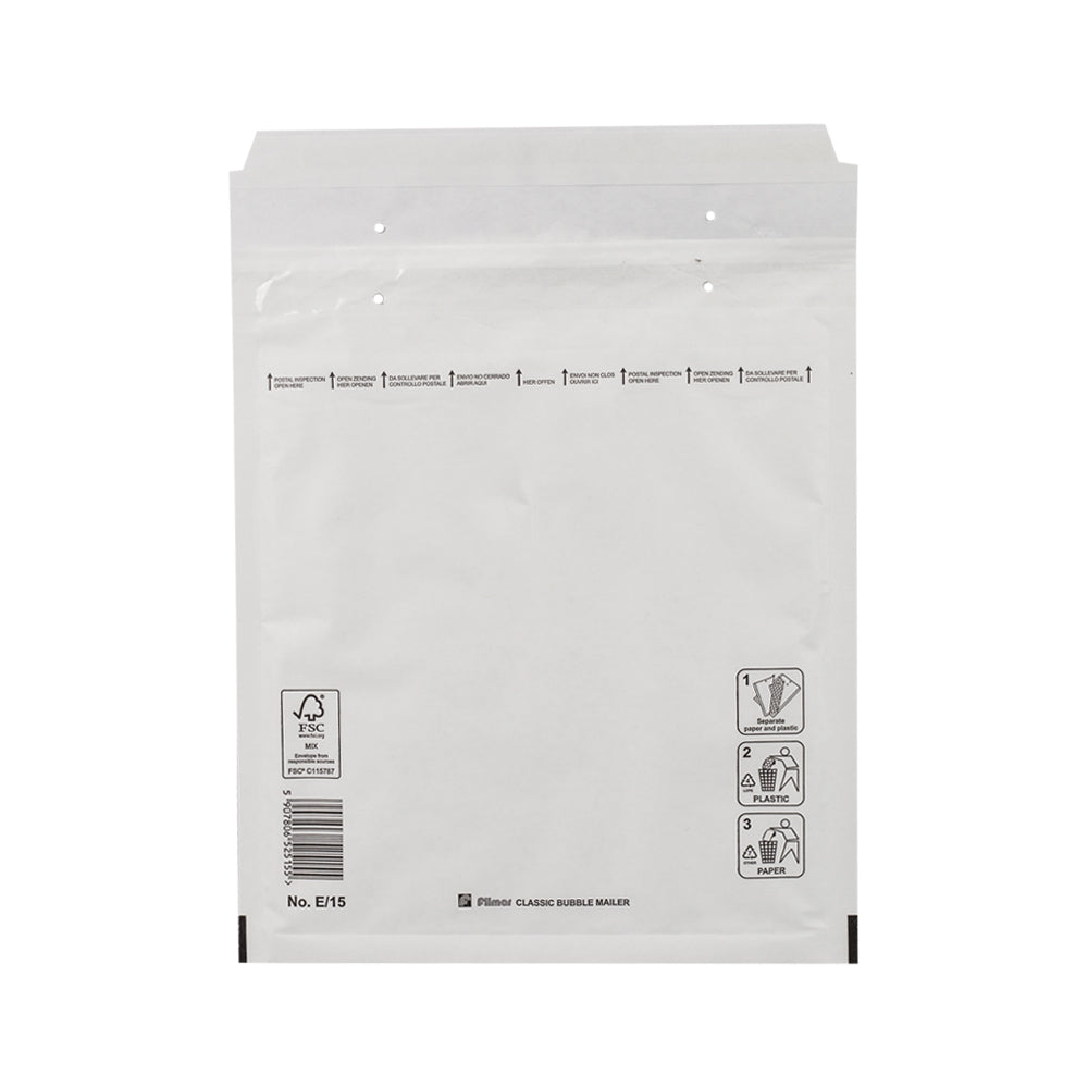 Versenden Sie alle Ihre Produkte einfach und kostengünstig in diesen stabilen Luftpolsterumschlägen von VIV! Die Außenseite besteht aus starkem Kraftpapier, während die Innenseite mit Luftpolsterfolie ausgekleidet ist. Diese Kombination bietet einen hervorragenden Schutz für alle Ihre Produkte. Diese weißen Luftpolsterumschläge E/15 haben eine Innengröße von 220 x 265 mm. Dank des selbstklebenden Verschlusses benötigen Sie zum Verschließen der Luftpolstertaschen keine weiteren Verpackungsmaterialien. Einfach und sehr praktisch! Diese Luftpolsterumschläge E/15 sind eine umweltfreundliche und nachhaltige Wahl. Sie sind FSC-zertifiziert (Mix-Credit) und bestehen daher teilweise aus Recyclingpapier. Auch die Luftpolsterfolie im Inneren besteht teilweise aus recyceltem Kunststoff. Das bedeutet, dass die gesamte Hülle zu 70 % aus recycelten Materialien besteht. Selbstverständlich sind auch die Umschläge selbst zu 100 % recycelbar. Dazu muss das Papier von der Luftpolsterfolie getrennt und anschließend den richtigen Abfallströmen zugeführt werden. Luftpolsterumschläge E/15: bestehen aus hochwertigem weißem Kraftpapier und sind mit Luftpolsterfolie ausgekleidet. Bieten Sie einen hervorragenden Schutz für Ihre Produkte. Haben Sie einen praktischen selbstklebenden Verschluss. Sind FSC-zertifiziert und bestehen zu 70 % aus recycelten Materialien. Die Verkaufseinheit ist pro Karton. In einer vollen Schachtel sind 100 Umschläge enthalten. Eine volle Palette enthält 48 Kartons (4.800 Umschläge)
