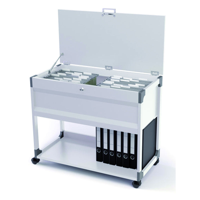 - Abschließbarer Archivwagen für ca. 100 Hängeregister oder 10 Standard-Hängemappen (80 mm) oder 18 dünne Hängeregister (40 mm).