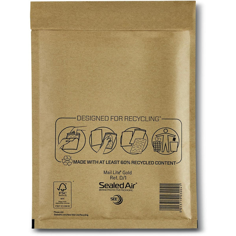 Mail Lite - Luftpolsterumschläge, Gold, D/1, 180 x 260 mm, Karton mit 200 Stück