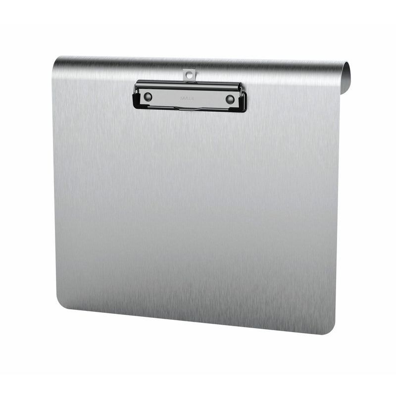 - Aluminium-A4-Klemmbrett quer mit Edelstahl-Bügelklemme, dadurch ist das Klemmbrett hervorragend für den Gesundheits- und Lebensmittelbereich geeignet.