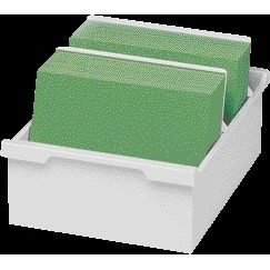 Die Kartei richtet sich an alle, die einen organisierten Arbeitsplatz benötigen, egal ob Sie selbstständig sind oder ein kleines Büro betreiben. Das Produkt besteht aus hochwertigem antistatischem Polystyrol, das eine lange Lebensdauer und den Schutz Ihrer Karten gewährleistet. Dank der Griffkante und der beiden mitgelieferten Kartenstützen bleiben Ihre Karten ordentlich an Ort und Stelle, während die profilierte Unterseite ein Verrutschen verhindert.