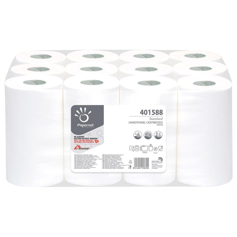 Papernet - Papierhandtücher Standard, Mitteleinzug, 1-lagig, 117 Meter, 12er-Packung