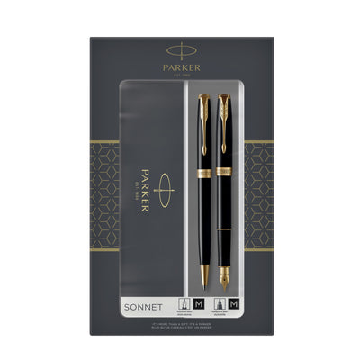 - Duo-Set aus Kugelschreiber und Füllfederhalter Parker Sonnet Black GT