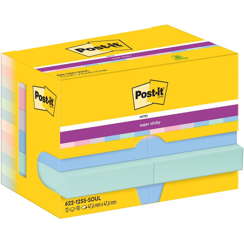 Post-it Super Sticky – Notes Soulful, 90 Blatt, 47,6 x 47,6 mm, Packung mit 12 Blöcken