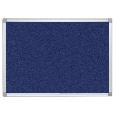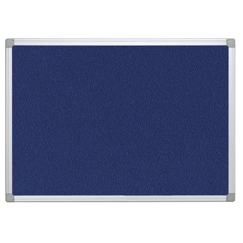 Glatte Filzoberfläche. Aluminiumrahmen. Montagematerial im Lieferumfang enthalten. Zur Verwendung mit Stecknadeln oder Klettverschluss. Farbe: Blau.