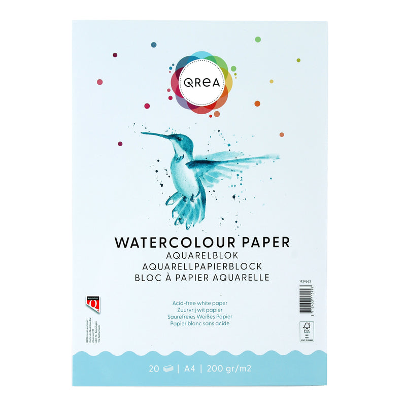 Qrea - Aquarellblock A4 20 Blatt 200gr geklebt | 5 Stück
