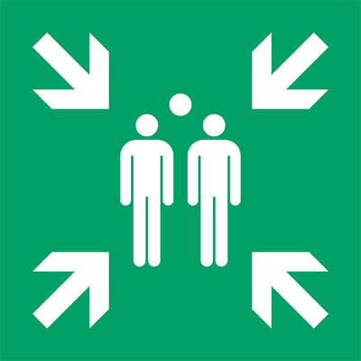 Einfach zu montierendes Kunststoffschild zur Anzeige eines Treffpunkts. Entspricht der allgemeinen Norm ISO 7010, die in Europa anerkannt ist. Dieses Symbol gibt einen einfachen Hinweis darauf, wo man sich im Notfall versammeln kann. Produktvorteile;