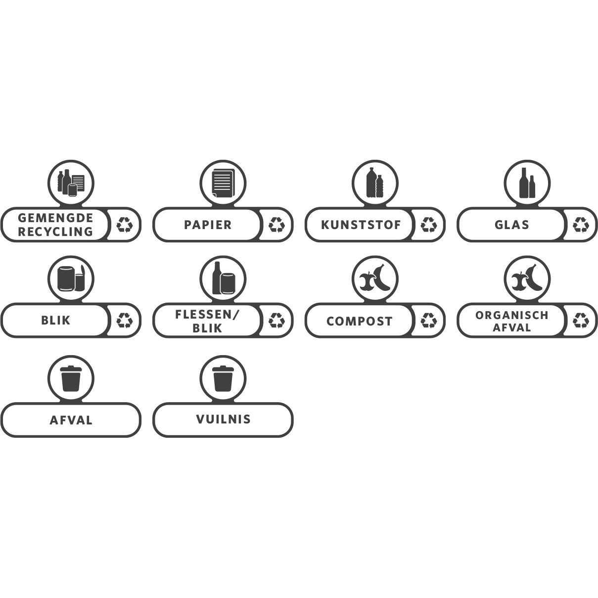 - Satz mit 10 niederländischen Etiketten für die Slim Jim Recycling Station zur Kennzeichnung der verschiedenen Abfallströme.