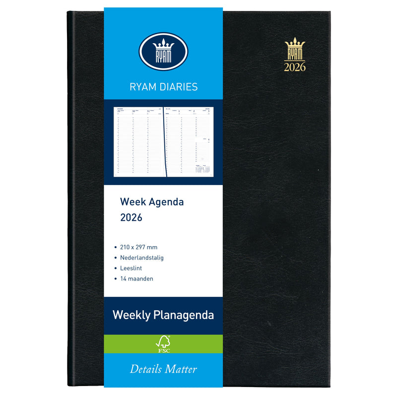 Ryam - Agenda 2026 Weekly Mundior 7 Tage/2 Seiten schwarz