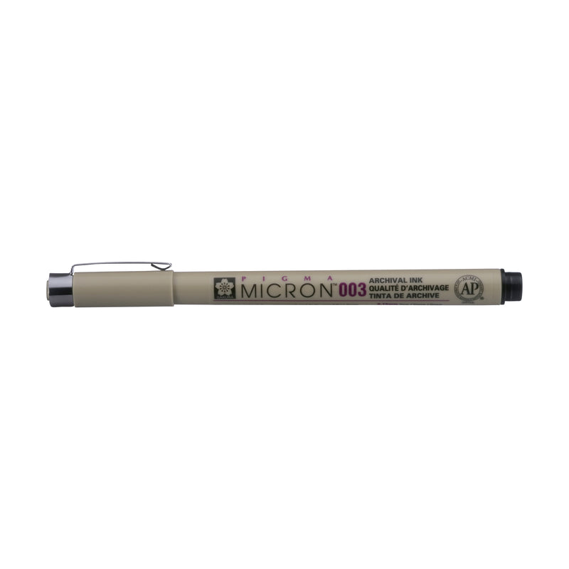 - Sakura Pigma Micron Fineliner 003 mit einer Stärke von 0,15 mm für den präzisen Druck.
