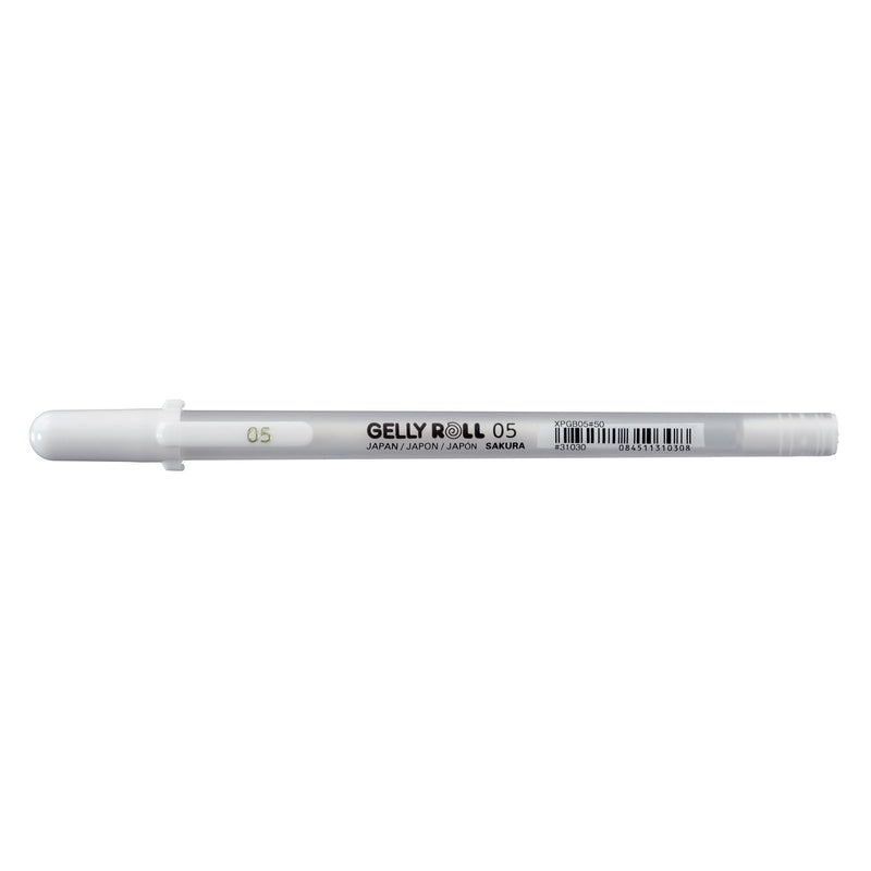 - Sakura Gelly Roll Basic 05 weißer Gelstift mit einer feinen Strichstärke von 0,3 mm.