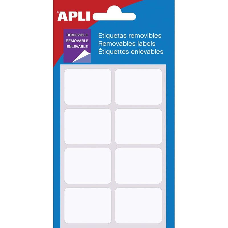 Apli - Étiquettes blanches amovibles pi 25 x 40 mm (l x h), 56 pièces, 8 par feuille (1895), pochette de 7 feuilles