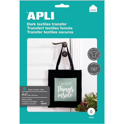 Apli - Papier Transfert T-shirt pour textiles foncés ou noirs, paquet de 5 feuilles