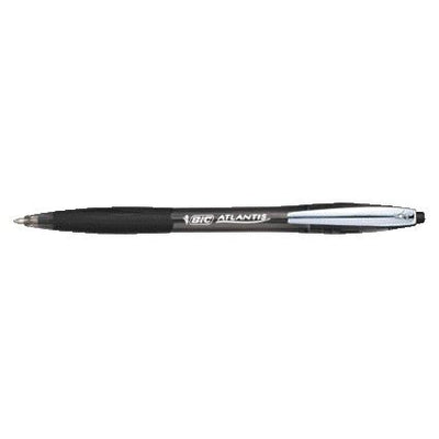 Bic - Stylo bille Atlantis clip métal souple clic moyen noir | 12 pièces