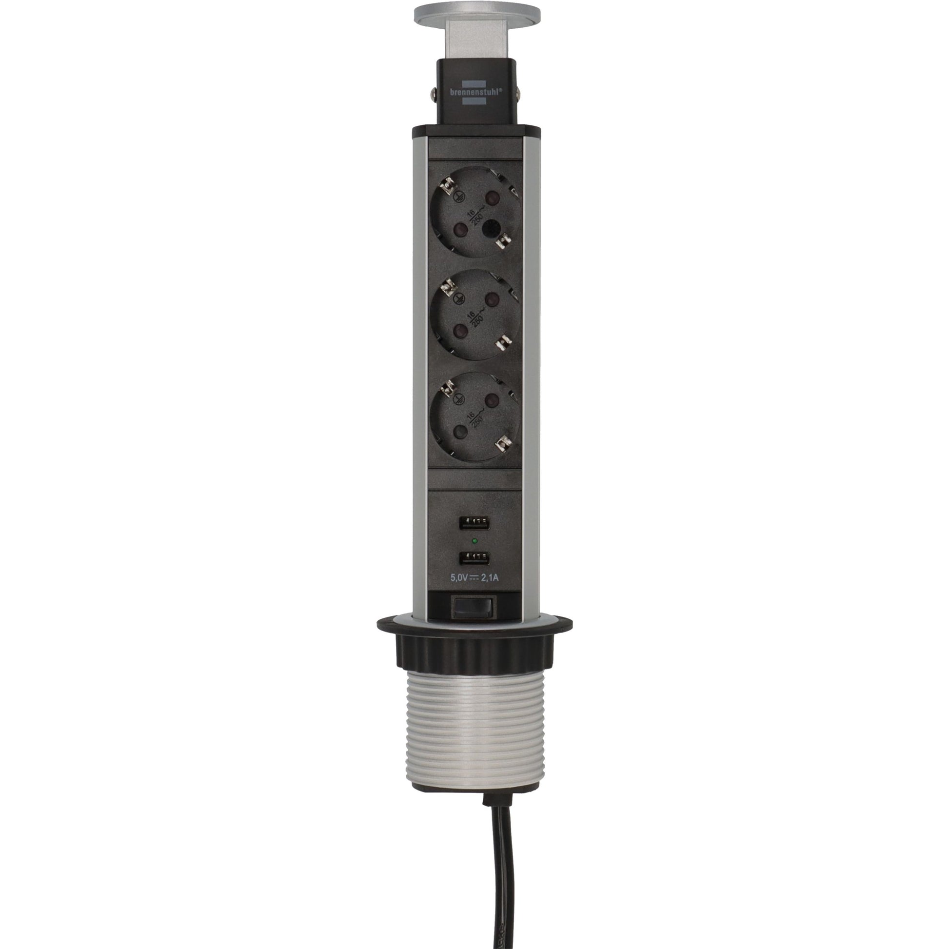 Brennerstuhl - Tour multiprise 3 prises dont 2 USB 2 mètres noir/argent