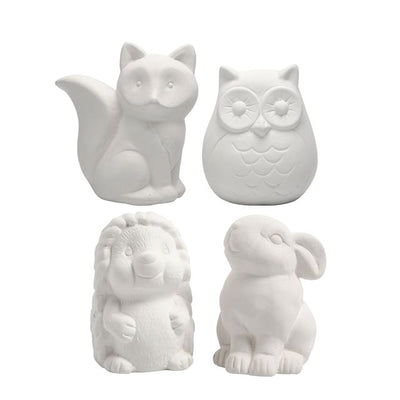 Creotime - Tirelire animaux Creativ Company terre cuite 4 pièces hibou, renard, lièvre et hérisson 9-10cm blanc