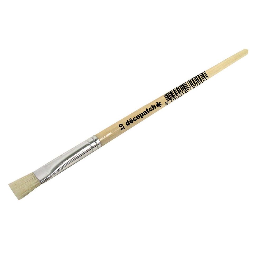 En pure soie. Pinceau adapté au travail de la colle Décopatch et du papier. Nettoyer avec de l'eau tiède et un peu de liquide vaisselle. Suspendre pour sécher « tête haute ». Si le pinceau est durci, utilisez un dissolvant doux.
