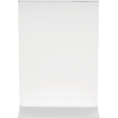 Fabriqué en polystyrène transparent. Modèle de table pour information, menu, etc. Ouverture en bas. Double face pour une visibilité maximale. Base large et stable.