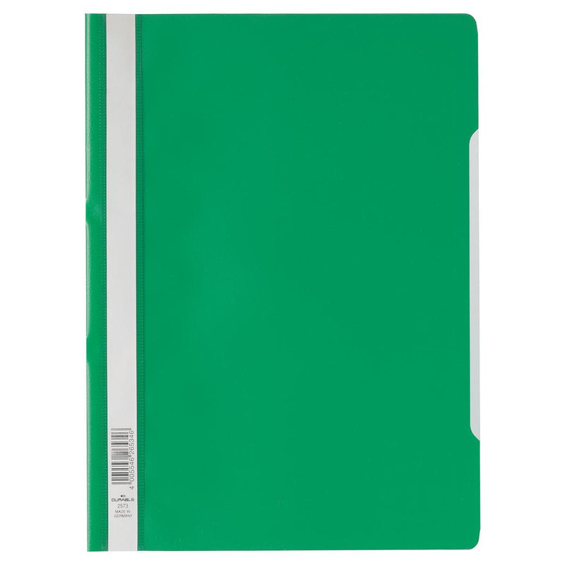 Dossier de qualité standard avec façade transparente. Les dossiers DURABLE à dégagement rapide sont conçus pour une variété d'applications, telles que les rapports, les devis, les notes et le stockage de documents. Large choix de couleurs et d'options d'étiquetage. Peut être équipé d'une attache dossier (article n° 2996), pour le rangement dans des classeurs à anneaux.