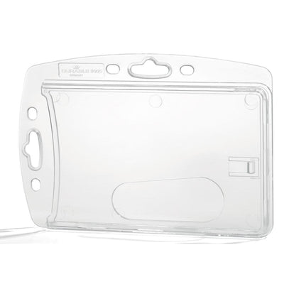 Pied 54 x 85 mm. Sans mécanisme de montage. Avec emplacement pour le pouce pour un remplacement facile de la carte. Peut être utilisé en format portrait ou paysage. Possibilité de combinaison avec un mécanisme à clip, chaîne, cordon textile ou enrouleur. Boîte de 10 pièces.