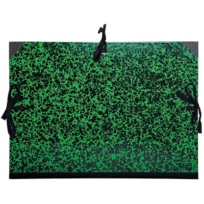 Fermeture par 3 paires de rubans. Coins et dos en lin noir. Marbré vert/noir. Certifié FSC.