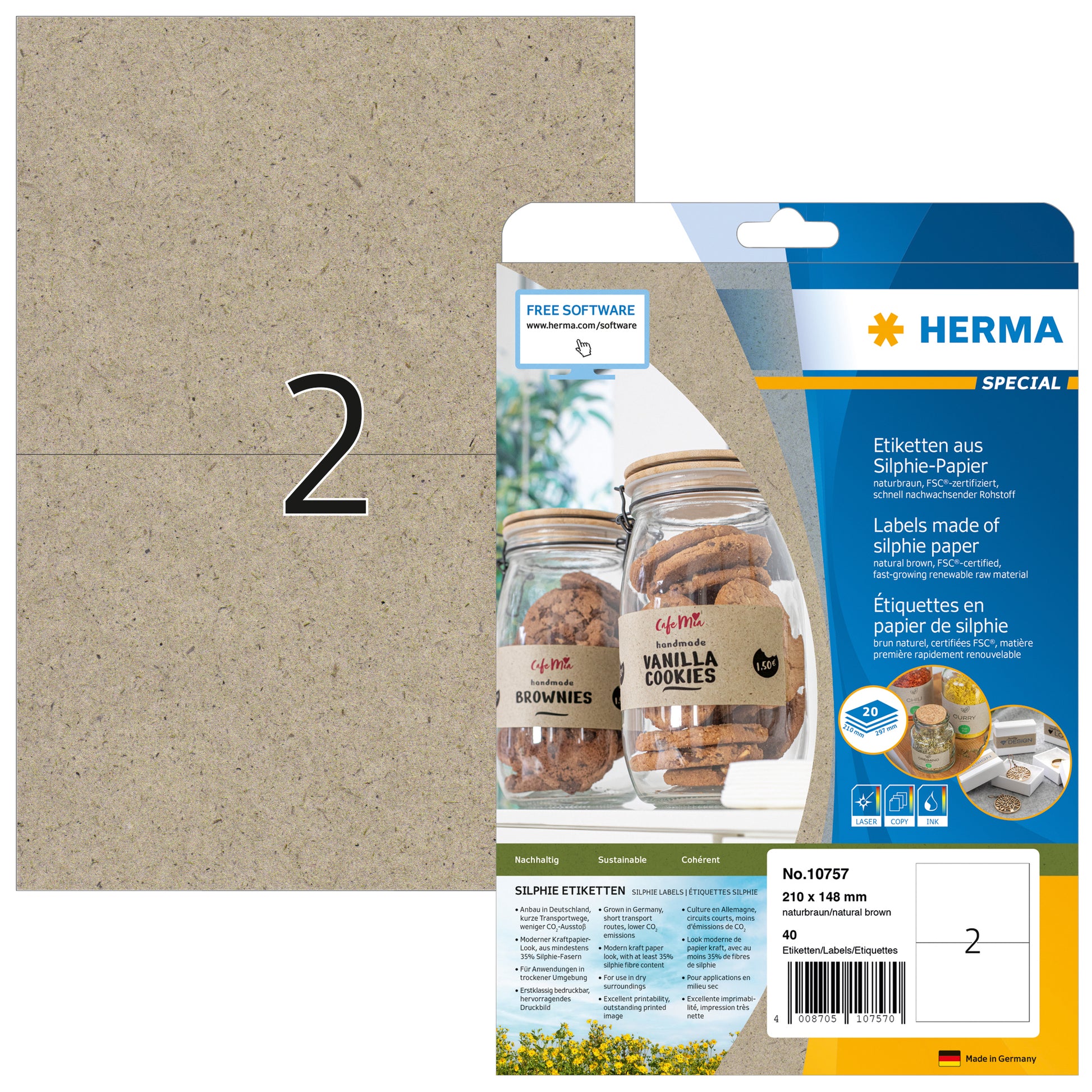 - Étiquettes en papier Silphie marron naturel, adhésives durablement sur feuilles A4, 20 feuilles par paquet.