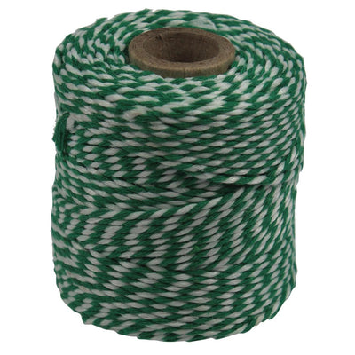 Klika - Corde en coton, vert-blanc, bobine de 50 g, env. 55 m
