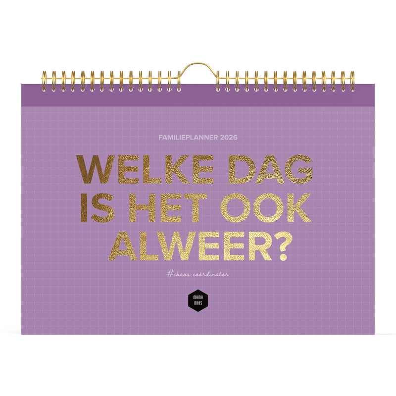 Zoek je een praktische planner voor het hele gezin? Dan ben je bij deze grappige Mama Baas familiekalender vol leuke quotes aan het juiste adres! Met een XL formaat en ruimte voor 6 gezinsleden behoud jij het overzicht. Deze kalender is dubbelzijdig bedrukt en heeft 1 pagina per week (6 kolommen en ruimte voor notities).