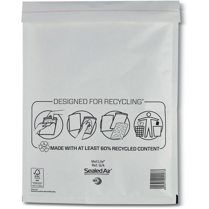 Mail Lite - luchtkussenenveloppen, wit, G/4, 230 x 330 mm, doos van 100 stuks