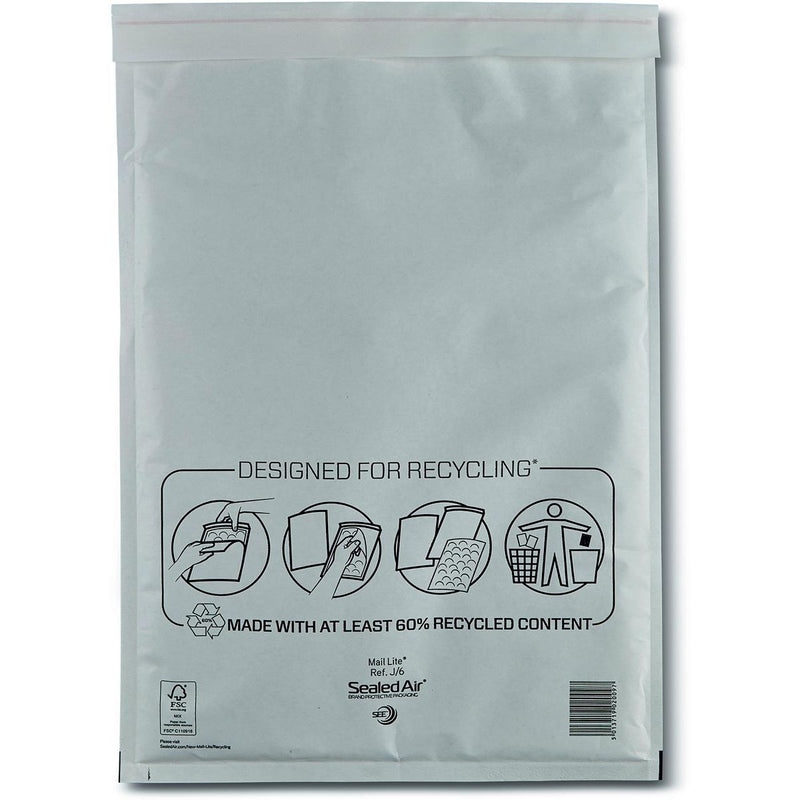 Mail Lite - luchtkussenenveloppen, wit, J/6, 300 x 440 mm, doos van 100 stuks