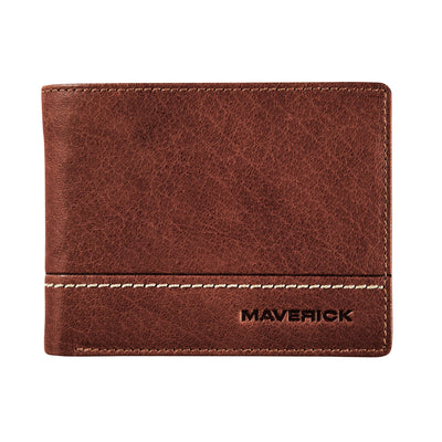 Maverick - Portefeuille Rough Gear compact avec compartiment à monnaie RFID cuir marron