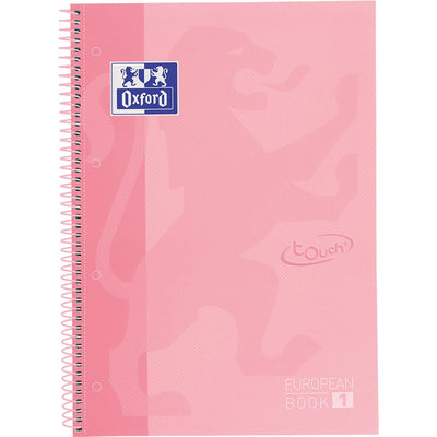 Oxford - Bloc à spirales School Touch peanbook, ft A4+, 160 pages, carreaux 5 mm, rose pastel