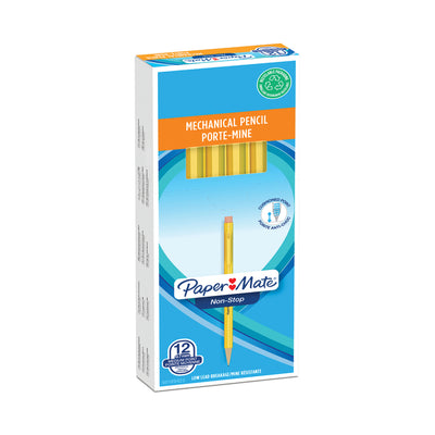 Paper Mate - Porte-mine non stop 0,7mm HB avec clip et gomme jaune