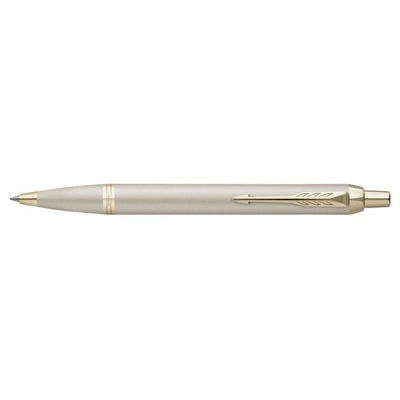 - Le stylo à bille Parker IM fonctionnel, intelligent et élégant est conçu pour le professionnel moderne et constitue un stylo à bille remarquable pour tout lieu de travail. *Les stylos Parker IM Monochrome sans compromis ont un boîtier entièrement métallique qui semble luxueux dans vos mains. *Et le design monochrome, des détails couleur champagne à la pointe couleur champagne, dégage une élégance inégalée. *Avec plus d'un siècle de savoir-faire et d'expertise en interne, ce stylo signature Parker comporte des pièces métalliques exclusives décorées d'un revêtement PVD qui offre une résistance supérieure à l'usure et à la corrosion. *Le stylo à bille moderne utilise des recharges d'encre Quinkflow pour stylos à bille pour une expérience d'écriture quotidienne, propre et régulière. *Le stylo Parker IM Monochrome constitue un cadeau extraordinaire et est livré dans un élégant coffret cadeau Parker.