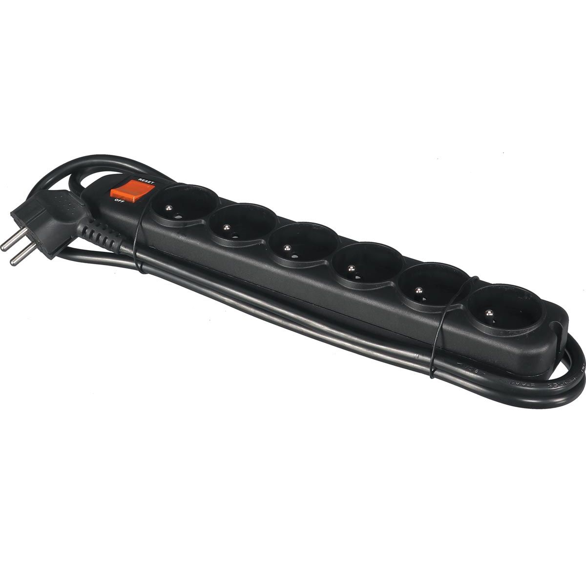 6 prises Avec interrupteur Avec protection contre les surcharges Longueur de câble : 1,5 m Charge max. puissance : 3500 W Couleur : noir Pour la Belgique