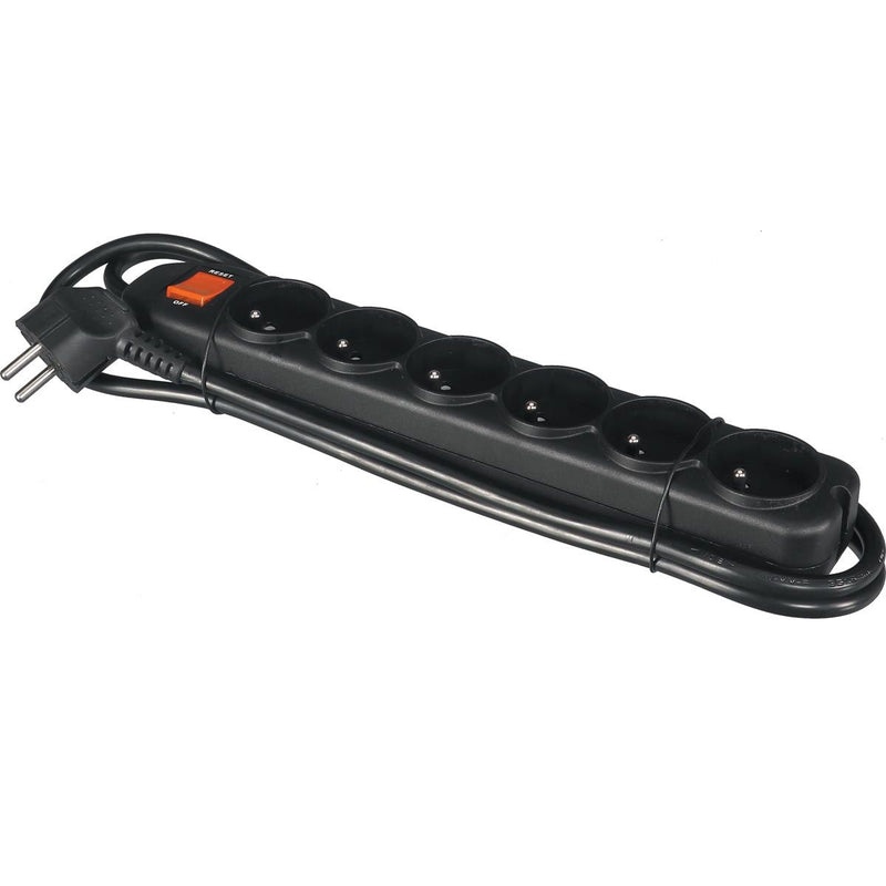Perel - Prise avec 6 prises, interrupteur et protection contre les surtensions, noire, pour la Belgique