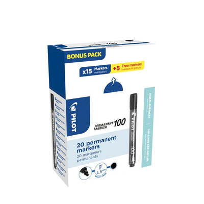 Pilot - Feutre 100 ronds fins noirs boîte de 15+5 offerte