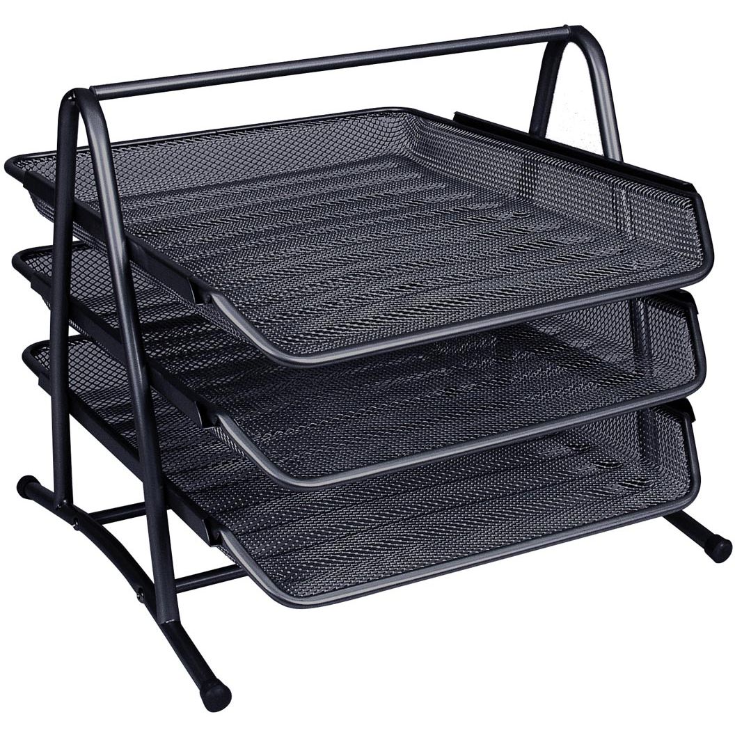 Q-CONNECT - 3 corbeilles à courrier, maille métallique, pi A4, noir