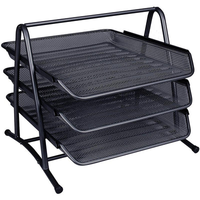 Set de 3 corbeilles à courrier En maille métallique Pour format A4 Avec pieds en caoutchouc Ft 27,8 x 35 x 27,5 cm (l x p x h)