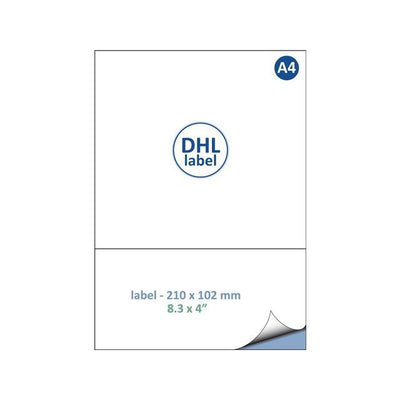 et les étiquettes de retour sont idéales pour les boutiques en ligne qui envoient souvent des colis. La feuille imprimable se compose de deux parties. La partie supérieure est un bordereau d'expédition ou une facture aux dimensions de 210 x 195 mm. La partie inférieure est une étiquette de retour aux dimensions de 210 x 102 mm. Les étiquettes sont faciles à retirer de la feuille. Le produit contient 500 étiquettes blanches adaptées à DHL