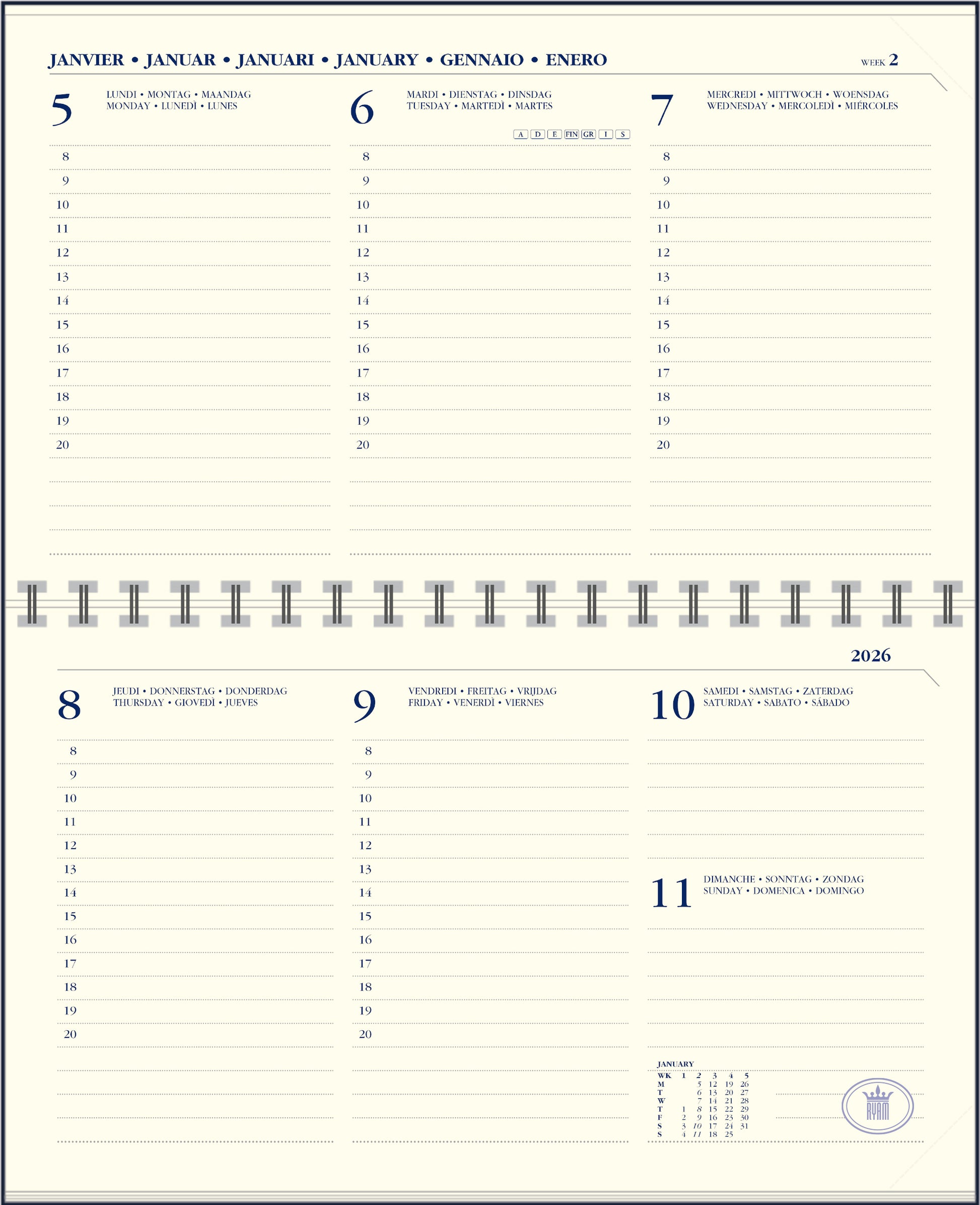 Ryam - Agenda remplissant 26 mémo plan 7 compact paysage