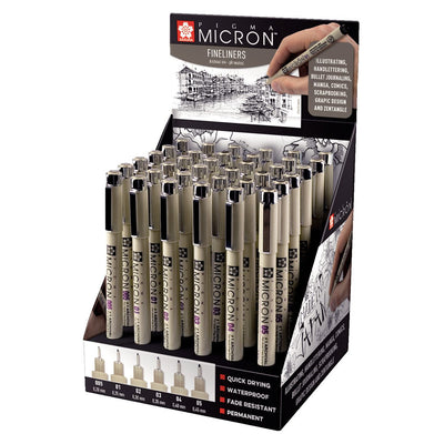 - Les feutres Sakura Pigma Micron Fineliners sont idéaux pour les applications techniques et artistiques. L'affichage se compose de 36 feutres fins avec différentes épaisseurs de trait.