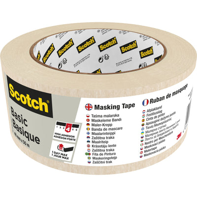 - Le ruban de masquage Scotch® Basic est un ruban de masquage beige pour surfaces invulnérables, pour les travaux généraux de masquage et de recouvrement, s'enlève sans résidu de colle jusqu'à 1 jour après application.