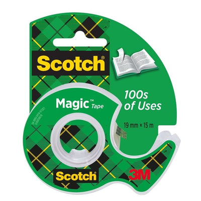 - Le ruban Scotch® Magic™ est le ruban invisible original avec une finition mate pour réparer les imperfections mineures à la maison, à l'école et au bureau. Le ruban adhésif vous offre une étanchéité solide, sûre et permanente grâce à la technologie adhésive de confiance de 3M, qui devient claire après l'application. Il a un design facile à appliquer et est sans danger pour les photos, ne sèche pas et ne jaunit pas. Le ruban Scotch® Magic™ est disponible en différentes largeurs et longueurs et s'adapte à tous les types de supports de ruban.